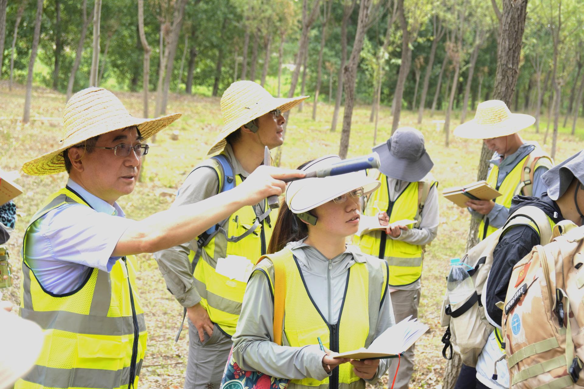7月11日上午,校长王焰新赴周口店实习基地调研暑假实习工作,看望在站实习师生,与地学院010212珠峰班同学一起,参加官地-羊屎沟-三不管沟-大砾岩山北坡实习路线教育教学,并与师生一起探讨交流。副校长刘杰,学校办公室、后勤保障部、校友与社会合作处、本科生院等单位相关负责人参加。