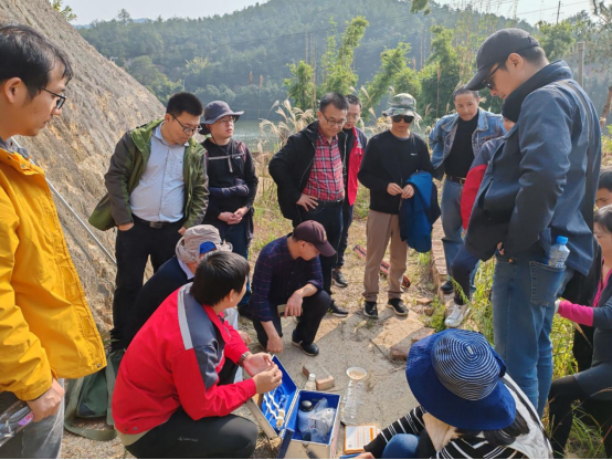 11月25日上午,在江西地质七队杨斌和李家桢两位稀土矿项目负责人的陪同下,地学院教师调研了赣县夏湖重稀土矿区,考察了夏湖离子吸附型重稀土矿的花岗岩风化壳剖面。杨斌同志详细介绍了夏湖离子吸附型稀土矿床的地质特征和勘查找矿历史,随后两位负责人同志演示了离子吸附型稀土矿的勘查技术方法以及七队独立研发的新型勘查工具——赣南钻的使用方法。老师们对该类型稀土矿的成矿机理、赋存机制及勘查技术展开了热烈的讨论,并纷纷尝试利用赣南钻开展风化壳野外取样工作。