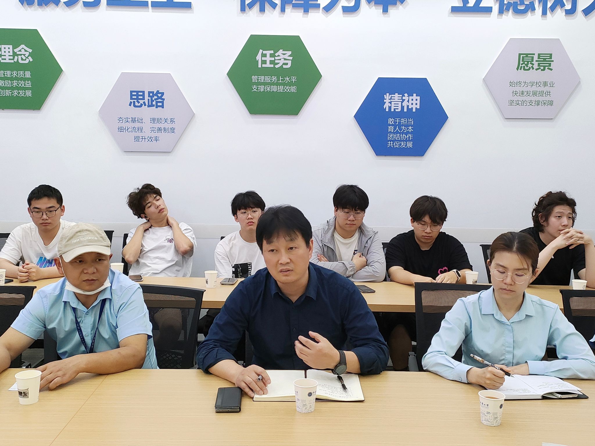 下午2点,mg电子试玩 党委副书记赵得爱及辅导员滕笑丽与2023级珠峰班30余名学生齐聚饮食服务中心北区会议室,与饮食服务中心相关领导、工作人员展开座谈交流。