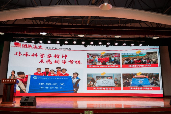 “地学之光”科普讲解队于2025年1月入选武汉市爱心托管班首批Ⅰ类课程,50 名志愿者历时两周,走进190余个社区,为6000余名青少年带去生动有趣的地学课程,同时联合池际尚党支部开展院士精神宣讲。他们秉持“科普与科创同等重要”的理念,将地学知识从校园送向社会,用团队微光汇聚星火,成为青年传播科学精神、服务社会的集体标杆。